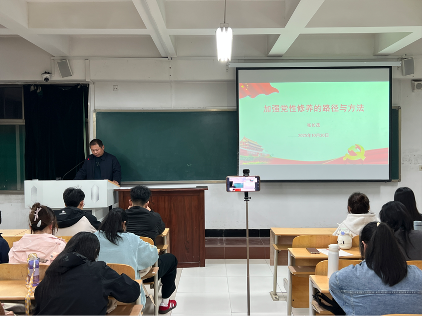 开班仪式结束后,张长茂为参训学员讲授《加强党性修养的路径与方法》主题党课。结合党的二十大报告中关于青年工作的重要论述,结合党史中的经典案例,阐释了"两个确立"的决定性意义,引导学员深刻理解党性修养的核心内涵,要求大家把学习习近平新时代中国特色社会主义思想作为首要政治任务,通过读原著、学原文、悟原理,做到学思用贯通、知信行统一。同时,张长茂结合自身工作经历,分享了基层党建工作中的鲜活案例,号召学员在专业竞赛中攻坚克难展现党员风采,在服务师生、奉献社会中锤炼党性品格。学员们认真聆听、详细记录,纷纷表示在党课中深化了对党性修养的理解,明确了具体实践路径,后续将把党课所学转化为提升自我的实际行动,以更坚定的信念和更务实的作风投入到学习和工作中。