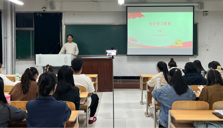 10月30日,数学与大数据学院辅导员赵磊为同学们讲授党纪学习教育专题党课。本次党课以《中国共产党纪律处分条例》为核心,通过“意义阐释—条例解读—风险警示—行动指引”四层架构,助力学生党员强化纪律意识、明确行为边界。