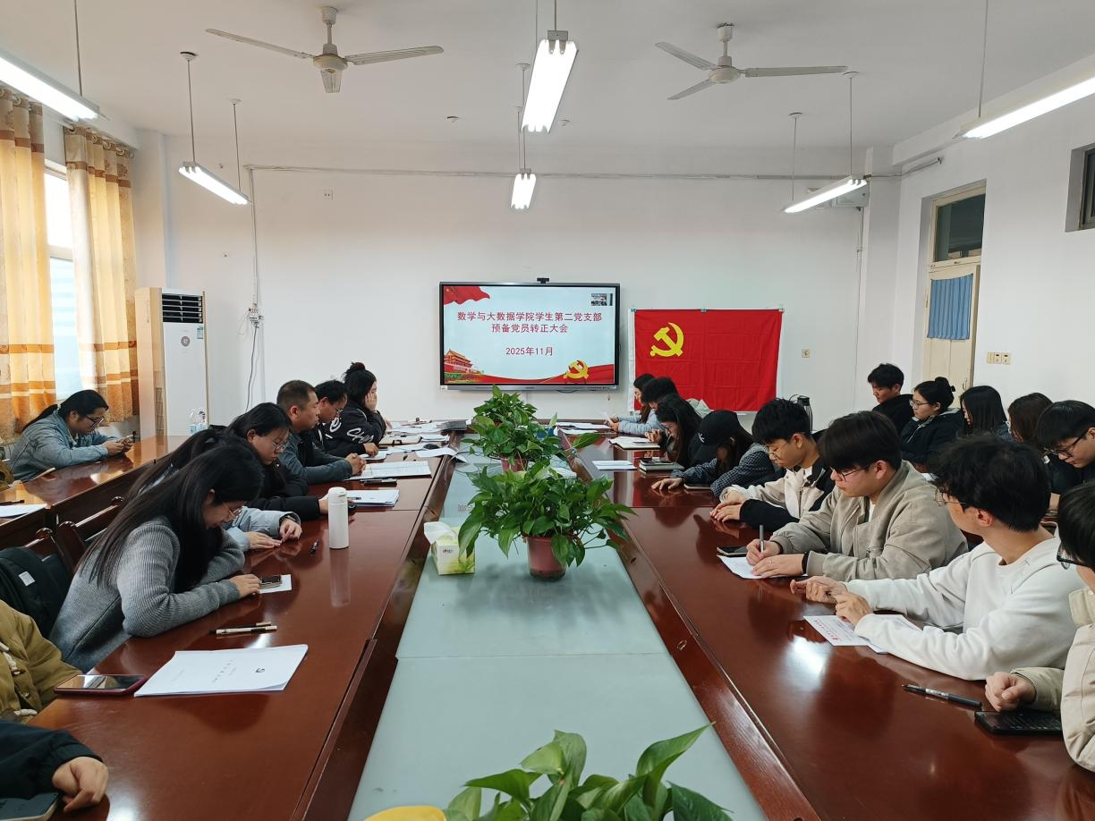 11月22日上午,数学与大数据学院学生第二党支部预备党员转正大会在8号楼213会议室顺利召开。支部16名正式党员、10名预备党员参会,学院党委委员、党委副书记张长茂列席指导。