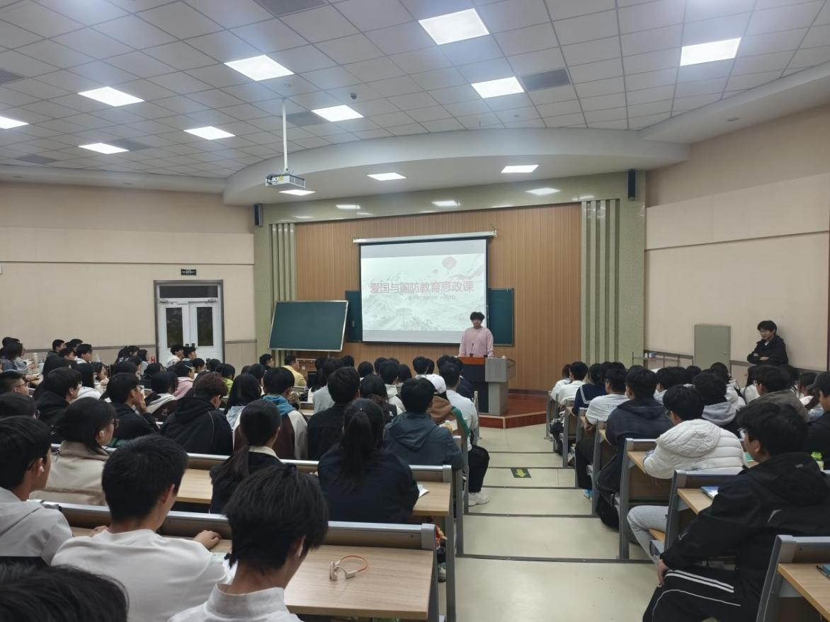 尉永凯同学以“新时代青年的国防责任” 为切入点,结合当前国际形势与我国国防建设现状,普及国防教育知识。他从 “国防的基本概念”“我国国防体系构成”“现代国防科技发展” 三个维度展开讲解,通过展示我国自主研发的先进国防装备图片、播放国防建设成果短视频,让学生直观感受我国国防实力的显著提升。尉永凯号召同学们,作为新时代大学生,了解国防知识是基础,更要树立国防无小事,人人皆有责的意识,将个人成长融入国家国防建设大局。随后,王启宇同学向同学们讲述了一个个感人至深的红色故事。从 “狼牙山五壮士舍身跳崖” 的英勇无畏,到 “董存瑞舍身炸碉堡” 的壮烈牺牲,再到 “新时代军人坚守岗位、守护家国” 的奉献故事,他用生动的语言、真挚的情感,将革命先辈与当代军人的爱国情怀展现得淋漓尽致。王启宇同学谈到,这些故事不是尘封的历史,而是激励我们前行的精神力量,青春的底色永远是奋斗与担当,希望同学们能从红色故事中汲取力量,以青春之我,护家国安宁。