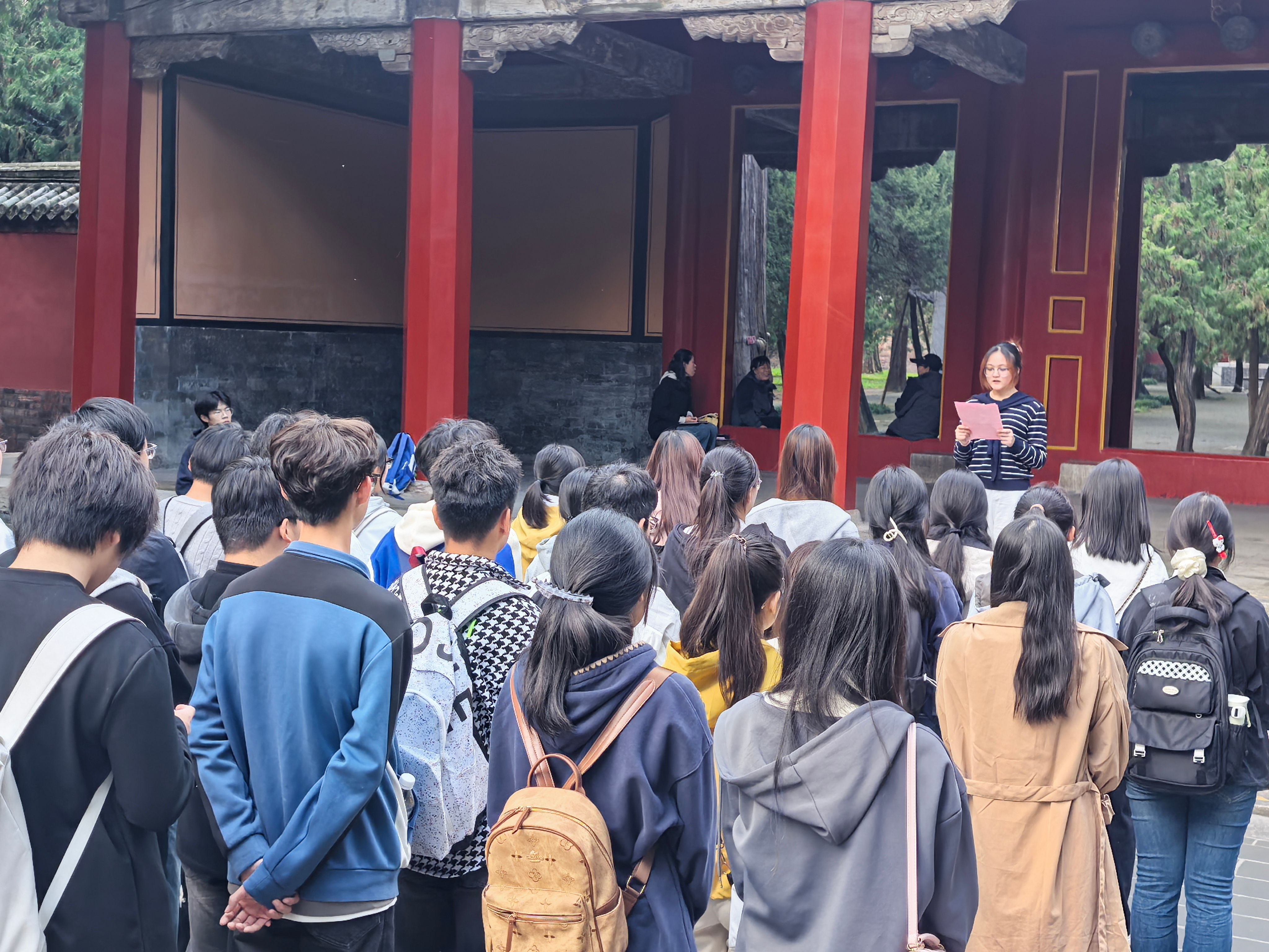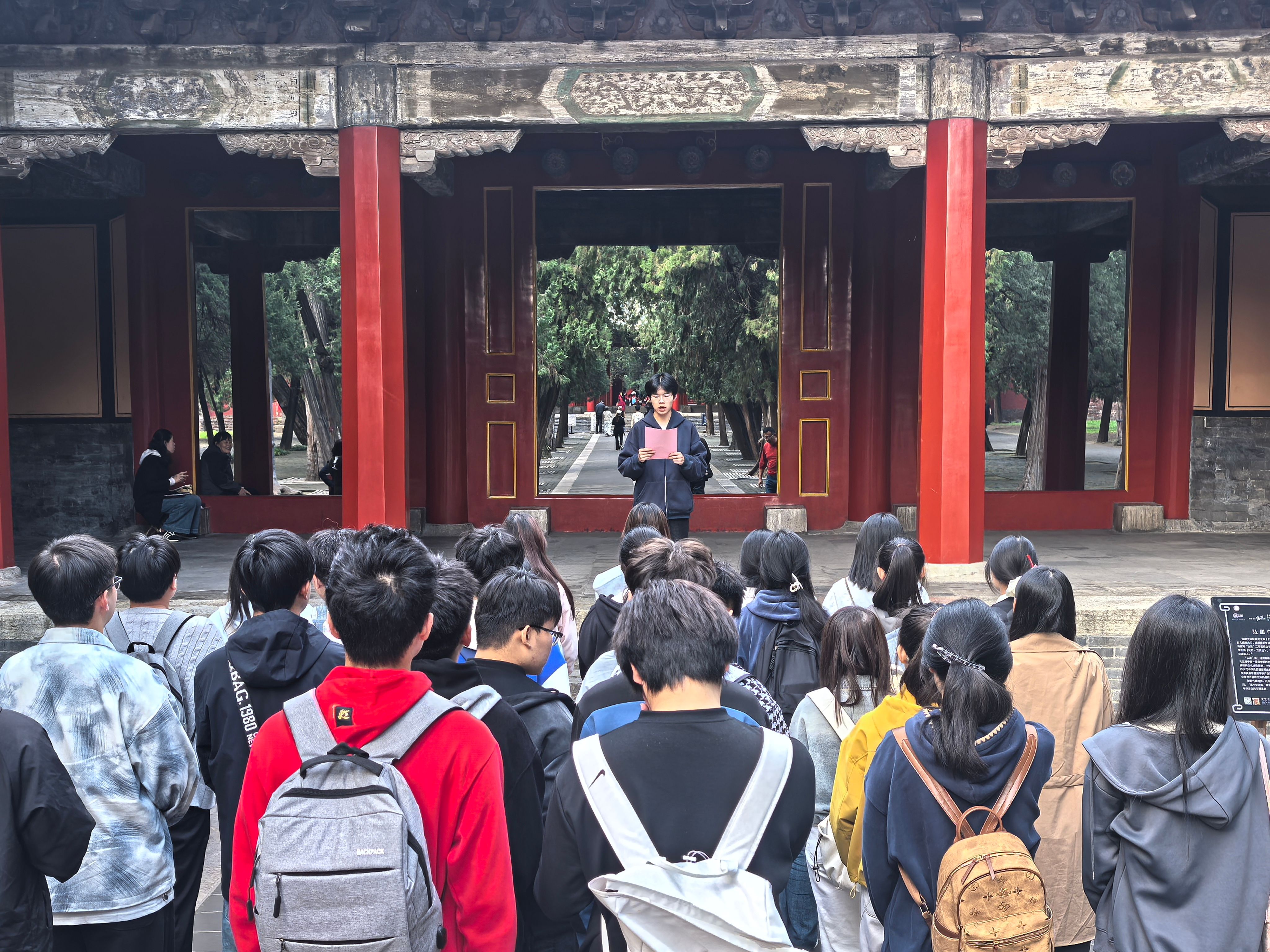 为引导青年学子厚植文化自信、传承儒家优秀传统文化,更好发挥党员先锋模范作用,做好党团教育工作,10月30日下午,数学与大数据学院全体新生赴三孔景区参观,并在孔府重光门举行“溯源儒风守初心·青春领航担使命”主题微团课活动。