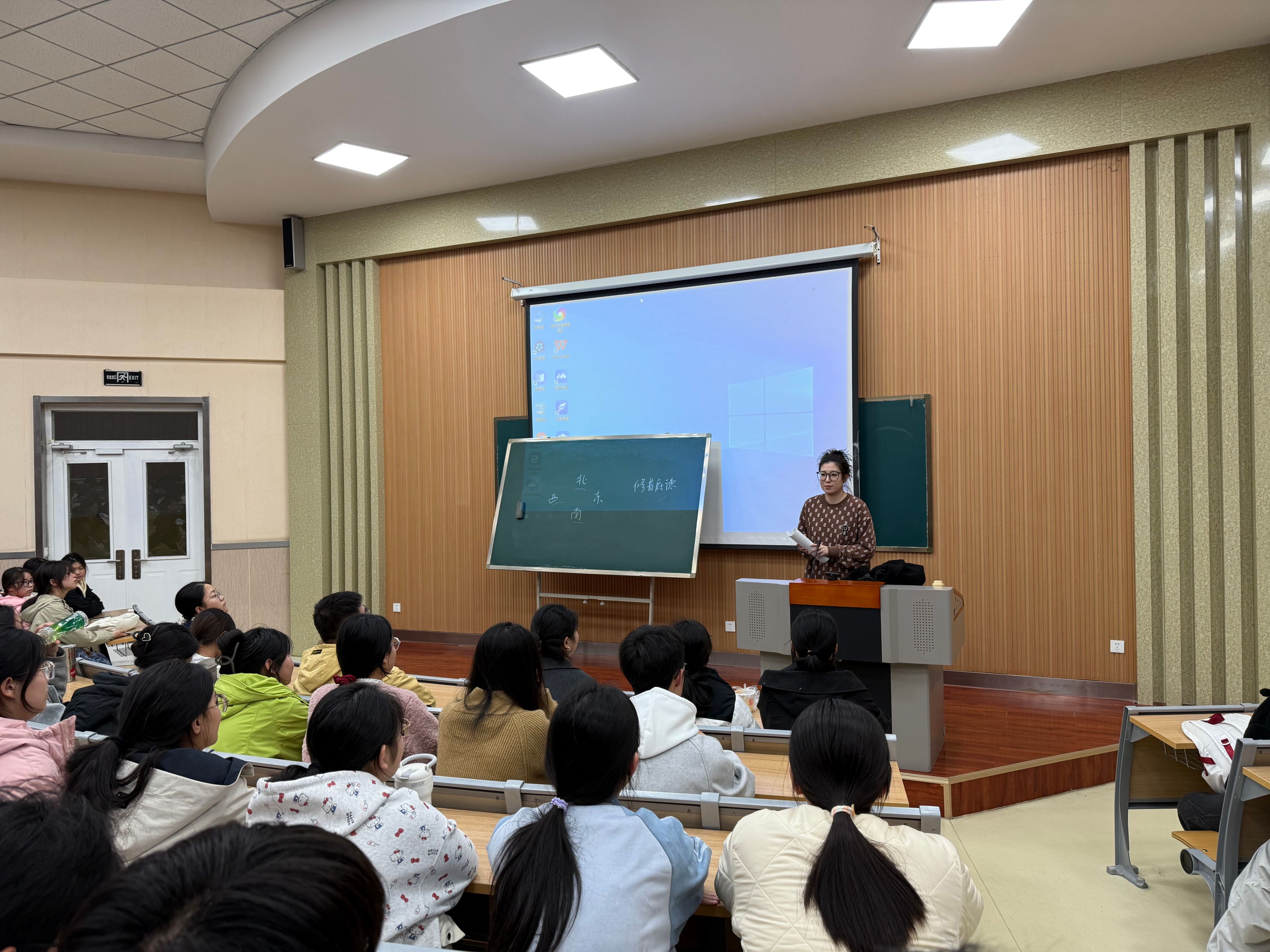 陈轶洋结合当前教育领域的发展形势与政策要求,开宗明义地阐述了师德师风对于师范生成长成才的核心意义。她谈到,师德师风是教师的立身之本、育人之基,师范生作为未来教师的储备力量,不仅要锤炼扎实的专业知识与教学技能,更要将高尚的师德师风内化于心、外化于行,以高尚的人格魅力和道德情操影响学生,成为学生健康成长的引路人。随后,陈轶洋结合张桂梅、黄大年等案例,阐述了教育家精神所蕴含的“心有大我、至诚报国的理想信念,言为士则、行为世范的道德情操,启智润心、因材施教的育人智慧,勤学笃行、求是创新的躬耕态度,乐教爱生、甘于奉献的仁爱之心,胸怀天下、以文化人的弘道追求”的内涵,围绕“教育家精神与师德师风的内在关联”“新时代师范生如何践行教育家精神”“以教育家精神引领教学实践”三个核心问题展开深入讲解,让师范生们清晰认识到教师职业的责任与底线,深刻理解教育家精神不是抽象的概念,而是体现在每一次备课、每一堂授课、每一次与学生的交流中。针对数学与大数据专业的特点,陈轶洋特别强调,未来的数学教师既要以“勤学笃行、求是创新的躬耕态度”锤炼专业本领,用严谨的逻辑思维培养学生的科学素养,也要以“乐教爱生、甘于奉献的仁爱之心”关注学生的心理成长,做到“教书”与“育人”有机统一,让教育家精神在数学课堂上落地生根。