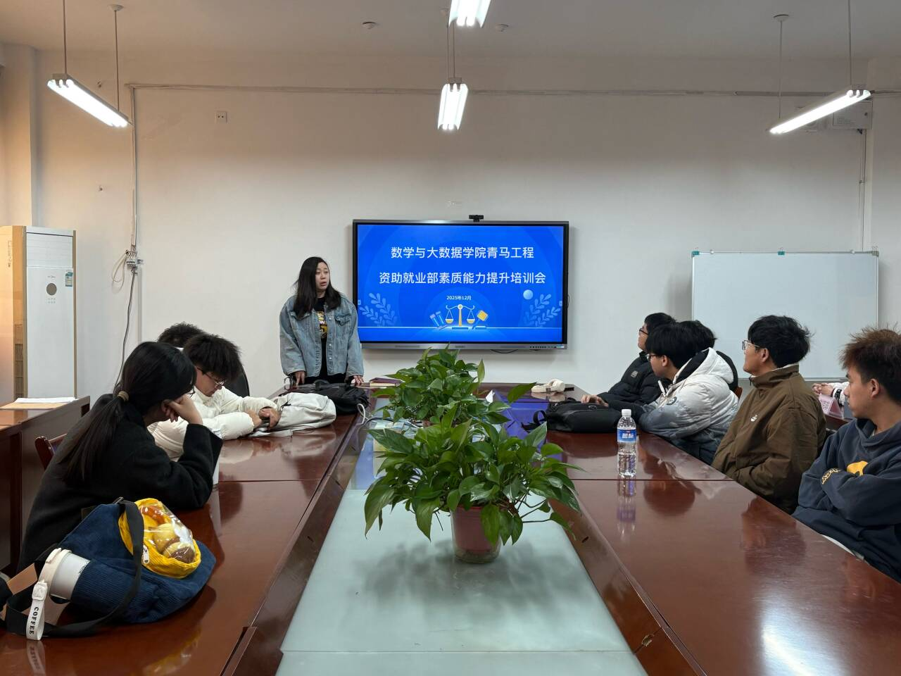 12月11日下午,数学与大数据学院在8号楼213会议室召开资助与就业指导部学生干部素质能力提升培训会。会议辅导员张薇主讲,2025届学生会资助与就业部全体成员参加。