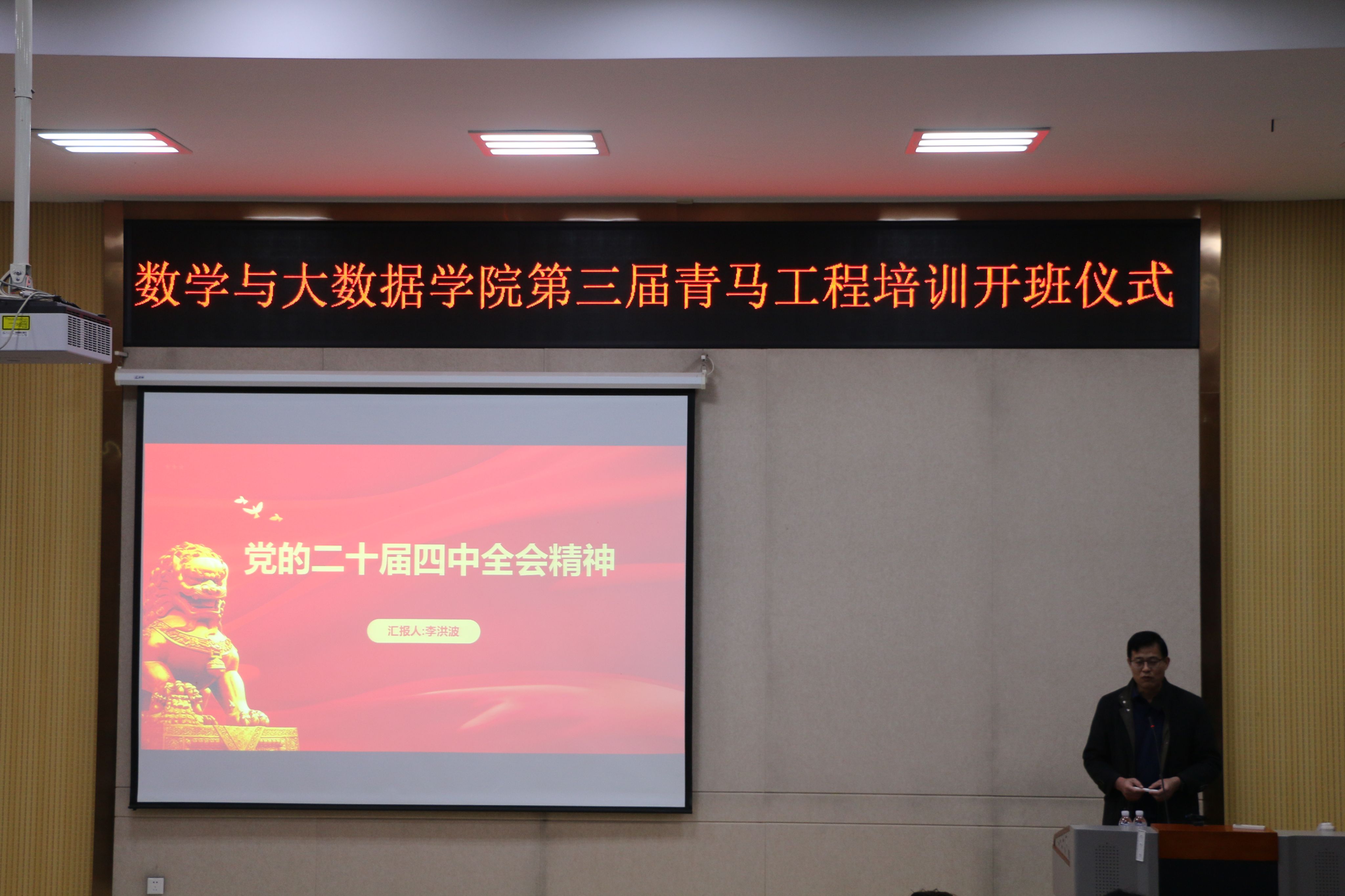 为深入学习贯彻党的二十届四中全会精神,推动理论学习与青年马克思主义者培养深度融合,切实提升青马学员的政治素养和使命担当,12月9日,党委书记李洪波以《深学笃行二十届四中全会精神 以青马担当书写中国式现代化青春篇章》为题,面向全体青马工程学员骨干开展专题宣讲会,将全会精神精准传递至青年骨干群体。
