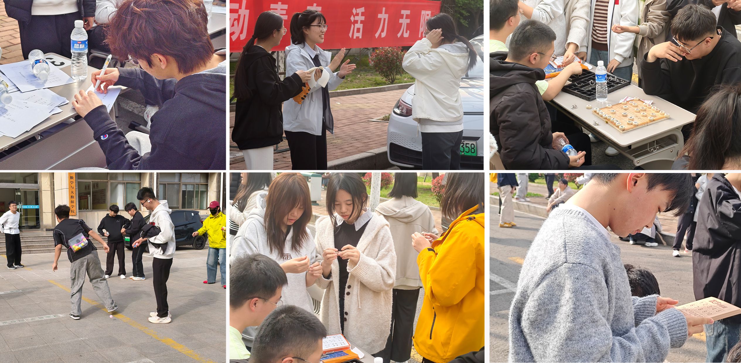 活动设置“脑力竞技区”与“趣味实践区”两大核心板块,为同学们搭建起多元互动的数学体验平台。在脑力竞技区,数独、魔方、象棋、五子棋等经典益智项目有序开展,同学们凝神思考、沉着应战,在逻辑推演中感受数学的严谨与精妙;华容道、鲁班锁等传统益智器具前,大家动手探索、协作破解,于指尖流转间体会空间思维的乐趣。趣味实践区则更具互动性,投壶、速算接力赛、你比划我猜等项目热闹非凡,同学们在团队协作中完成趣味挑战,将抽象数学知识转化为生动实践,现场欢声笑语不断,洋溢着乐学善思的浓厚氛围。各项目按规则累计积分,活动全程同步记录分数,结束后统计排名并评选奖项。