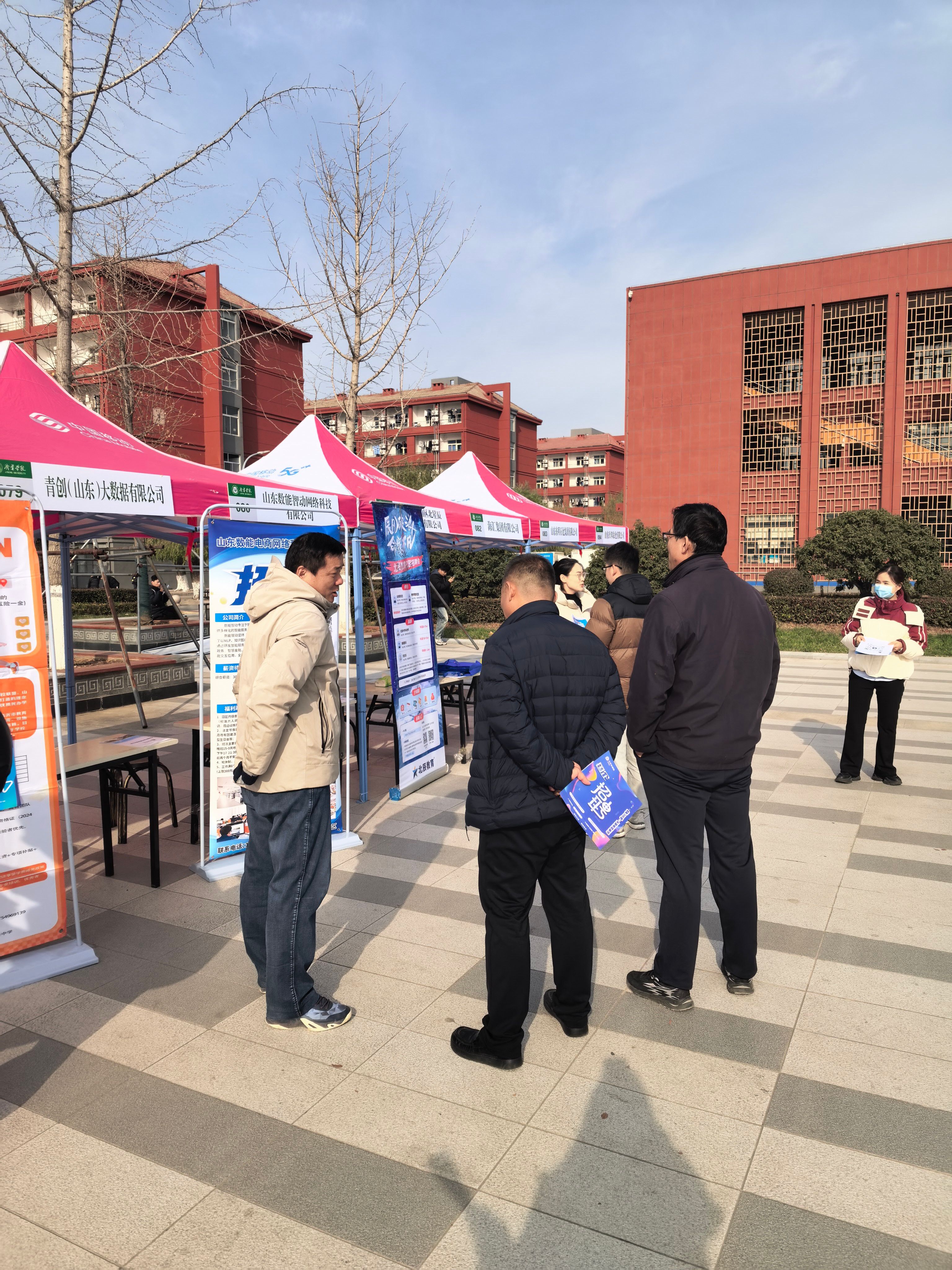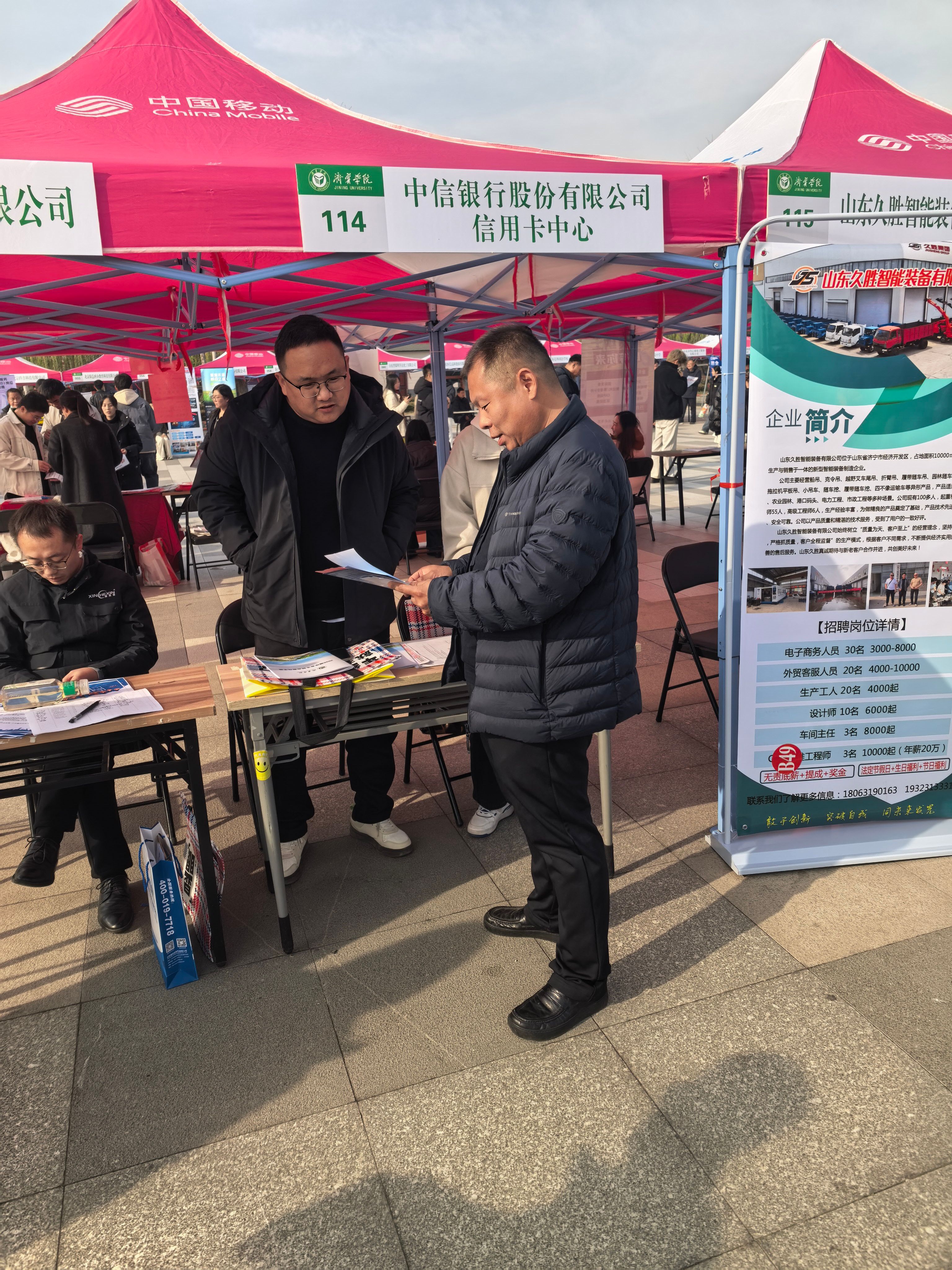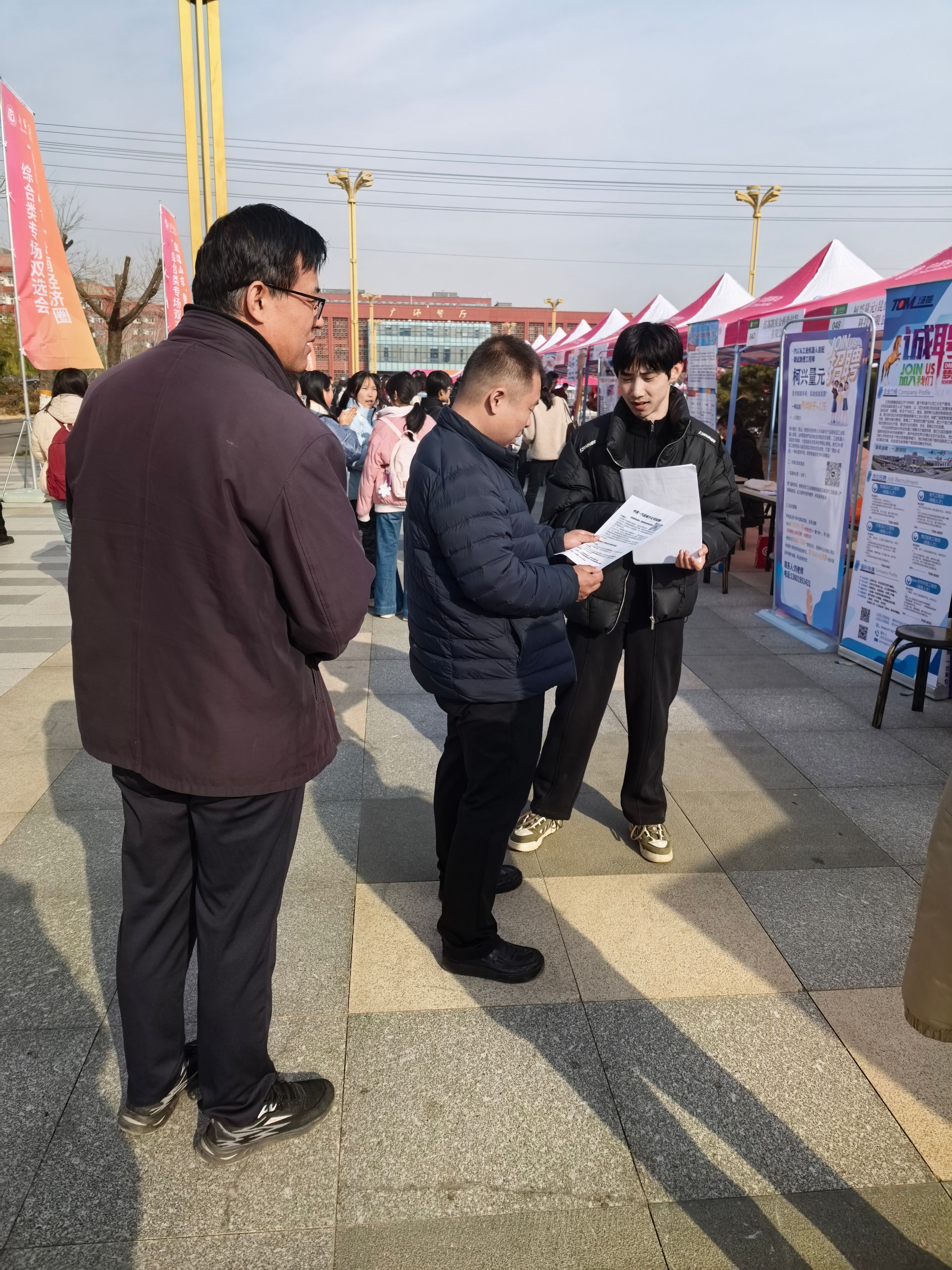 12月10日,广场餐厅举办“就选山东”鲁南经济圈综合类专场暨济宁学院2026届毕业生“暖冬就业行动”双选会,学院党委书记李洪波、学院党委副书记张长茂以及毕业班辅导员赵磊、曹诚诚到现场进行考察交流。