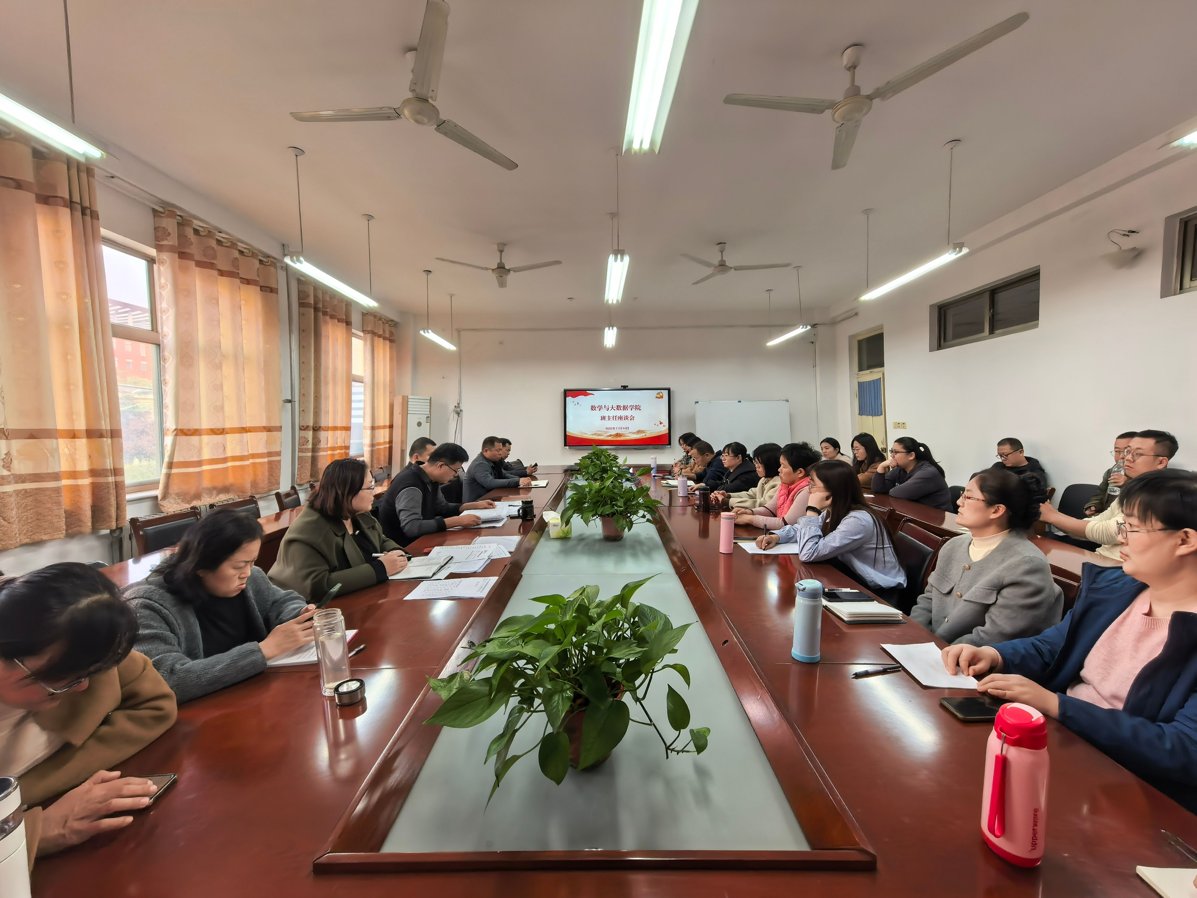 为进一步加强学院班主任队伍建设,提升育人实效,数学与大数据学院于11月14日在8号楼A213会议室召开班主任工作专题调研培训会。学院党委书记李洪波、院长刘军、副书记张长茂、副院长申莹及全体班主任参加会议。会议由李洪波主持。