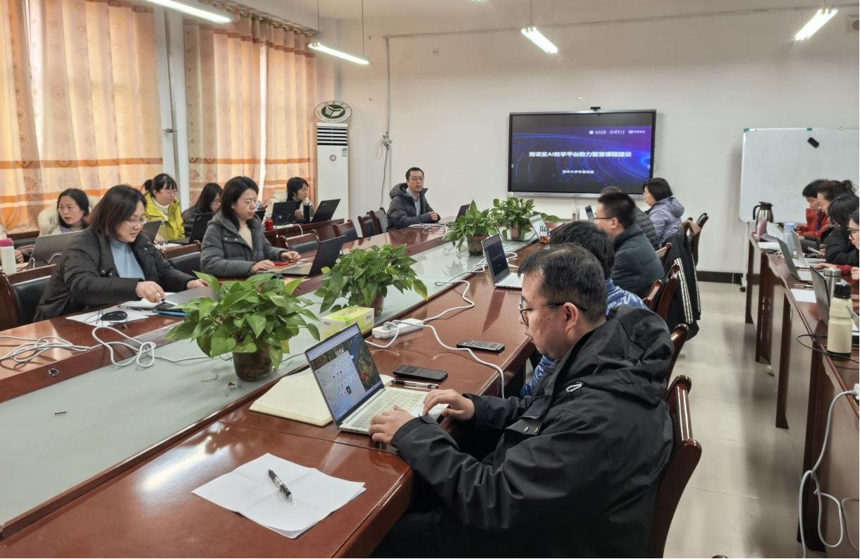 为主动适应人工智能技术与教育教学深度融合的发展趋势,助力我院教师精准掌握“师—生—AI”三元协同教学模式核心方法,切实推动课堂教学形态革新与教学质量提质增效,2026年1月28日下午,数学与大数据学院邀请清华大学学堂在线武嵘嵘、许腾两位老师,举办雨课堂AI教学平台实操培训专场。学院全体专任教师参会,副院长马小翠主持会议。