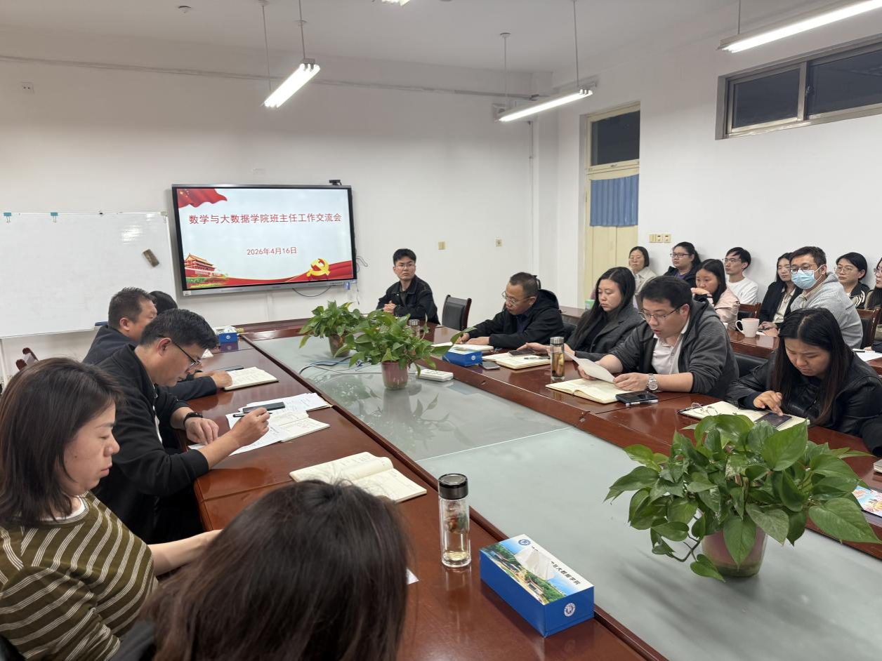 为进一步强化班主任队伍建设、提升班级管理实效、凝聚全员育人合力,4月16日下午,数学与大数据学院在8A213会议室召开班主任工作交流会。学院党政领导班子、全体教职工参加会议。
